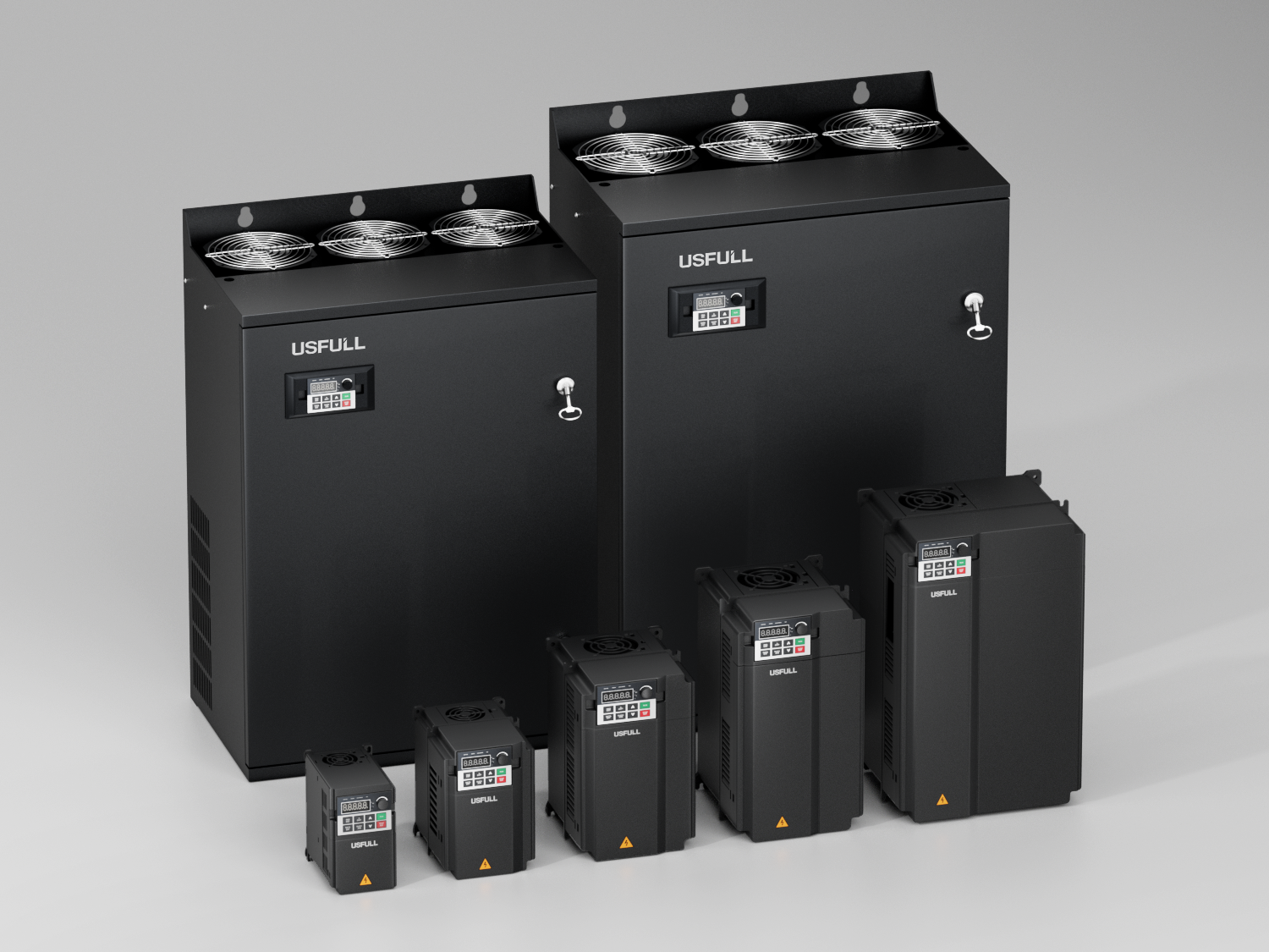 USFULL生產涵蓋全功率范圍(0.75kW至630kW)的逆變器,包括通用型號以及針對風扇、水泵、機床主軸等應用的專用型號,能夠滿足精確速度調節(jié)和節(jié)能的需求。采用智能制造和全流程質量控制。